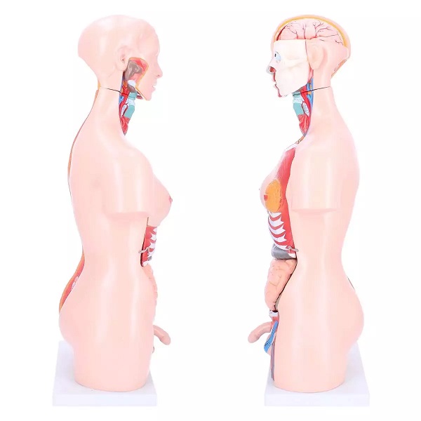 40-osaline elusuuruses torso, kahesooline. Seljaosa lihaskihtide, eemaldatavate lülisamba ja närvidega. Kõhupoolne külg avatud kaela ja kõigi siseorganitega on näha detailselt. Mehe ja naise suguelundid on vahetatavad. Magu saab lahti võtta kaheks osaks. Kuna üksikud struktuurid on värvikoodiga, sobib toode hästi inimese anatoomia õpingutes ja treeningutes. Torsot saab kasutada mitte ainult hariduslikuks demonstratsiooniks, vaid ka patsientide arutelude toetamiseks. Mudeli abil saab elavalt selgitada võimalikke diagnoose ja raviviise. Paigaldatud alusele. Kõrgus ilma aluseta 85 cm. Kaal 10 kg.
