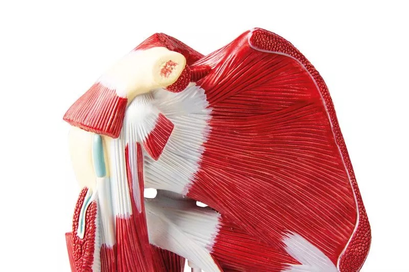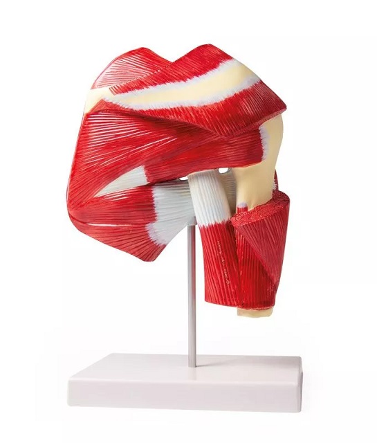 Õla mudel, millel on põhjalikult näha õla lihaseid, sidemeid ja luid. Erinevate lihaste osades on võimalik jälgida sügavamal olevaid lihaseid kuni luuni. Elusuuruses mudel ühes osas.