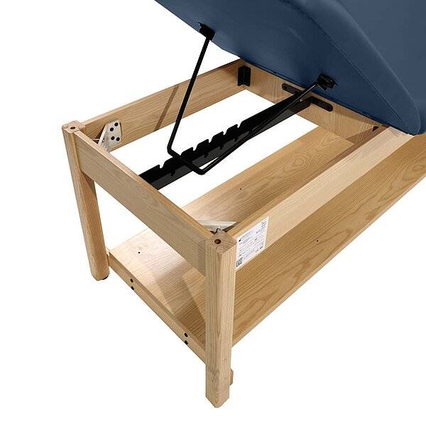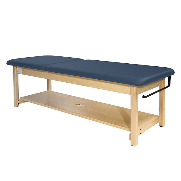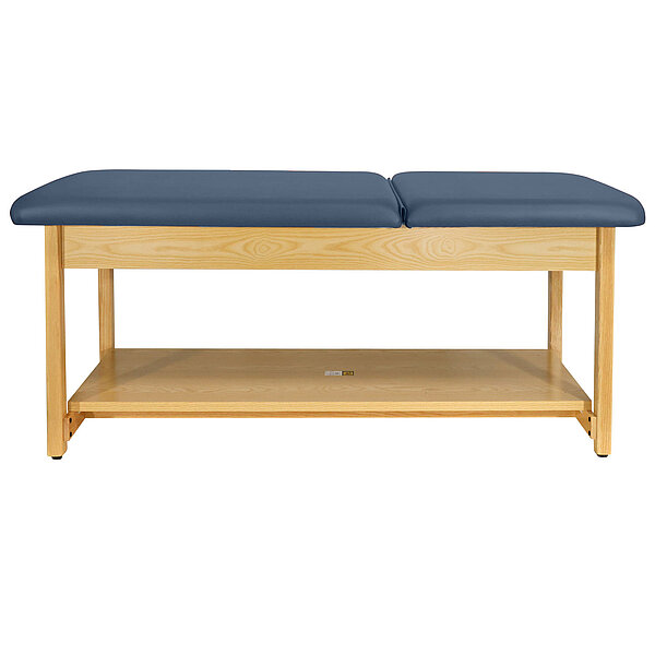 2-osalise lamamispinnaga teraapialaud on tugeva puitraamiga ja suure kandevõimega, mistõttu sobib see ideaalselt igapäevaseks kasutamiseks. Vastupidav kunstnahast kate on rebenemiskindel, kergesti puhastatav ning pakub suurepärast mugavust. Paberirulli hoidiku saab kinnitada kas pea- või jalaosasse. Laual on alumine riiul tarvikute või rätikute hoidmiseks. Alumise riiuli kõrgus põrandast 12,5 cm. Laud on saadaval erinevates värvitoonides, mis võimaldab sellel sobituda igasse vastuvõtu- või teraapiakeskkonda.