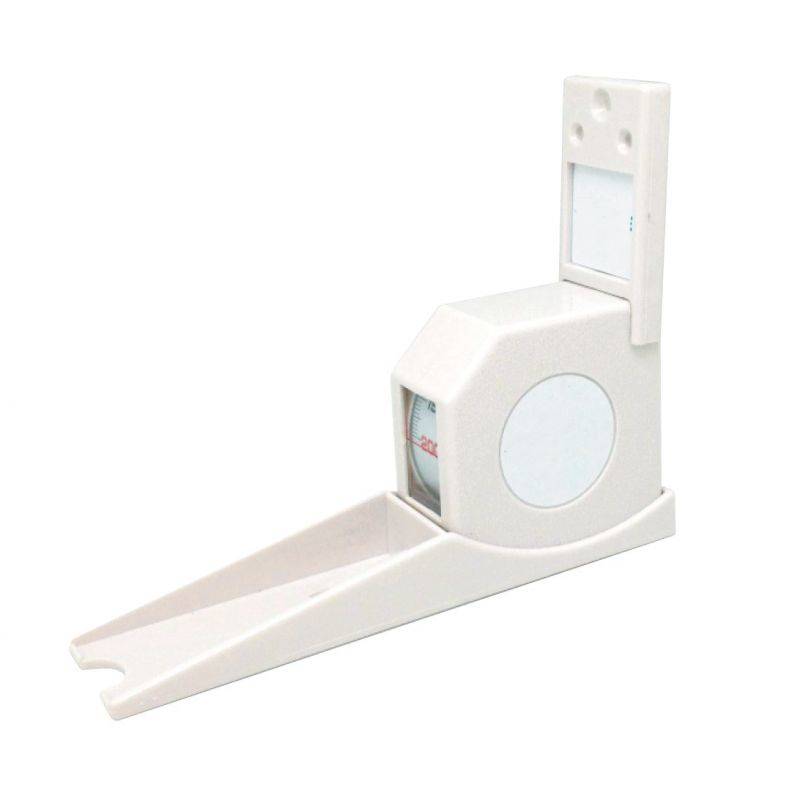 Tugevast plastikust kergesti kasutatav seinale kinnitatav pikkusemõõtja. Mõõtmisvahemik 0-220 cm.