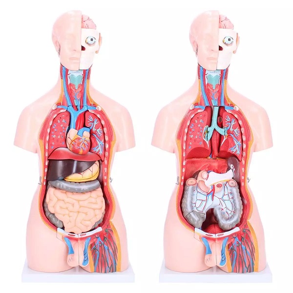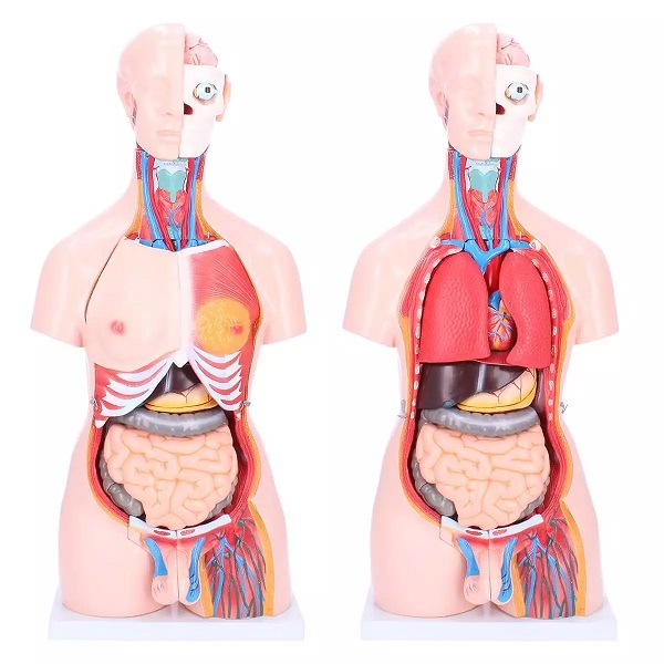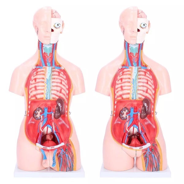 40-osaline elusuuruses torso, kahesooline. Seljaosa lihaskihtide, eemaldatavate lülisamba ja närvidega. Kõhupoolne külg avatud kaela ja kõigi siseorganitega on näha detailselt. Mehe ja naise suguelundid on vahetatavad. Magu saab lahti võtta kaheks osaks. Kuna üksikud struktuurid on värvikoodiga, sobib toode hästi inimese anatoomia õpingutes ja treeningutes. Torsot saab kasutada mitte ainult hariduslikuks demonstratsiooniks, vaid ka patsientide arutelude toetamiseks. Mudeli abil saab elavalt selgitada võimalikke diagnoose ja raviviise. Paigaldatud alusele. Kõrgus ilma aluseta 85 cm. Kaal 10 kg.
