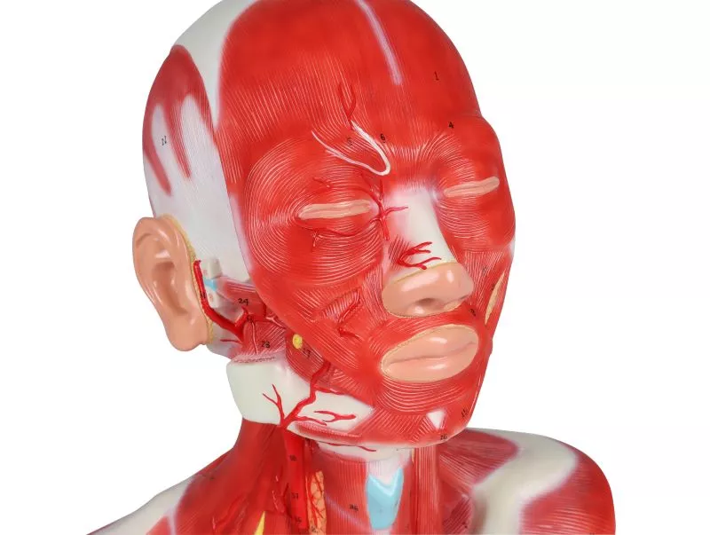 Pea-, kaela- ja rindkerelihased, 1-osaline mudel kujutab pea, kaela ja ülemise rindkere piirkonna lihaseid. Hästi on esitatud nii pindmised kui ka süvalihased, samuti rangluualuse arteri (arteria subclavia) ja unearteri (arteria carotis) kulgemine.